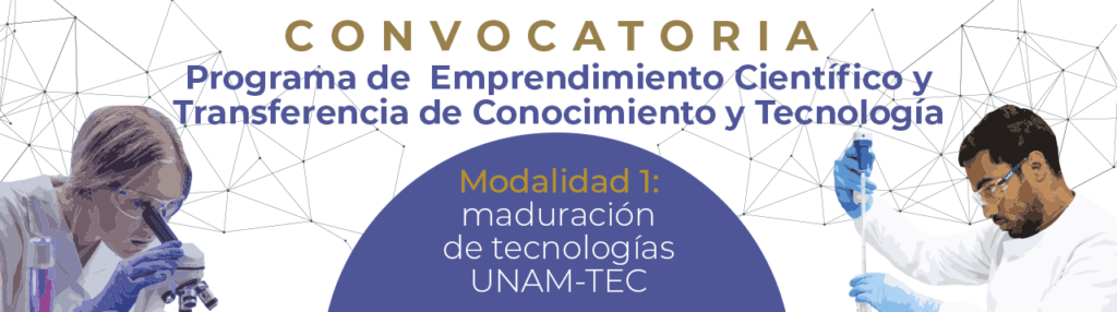 El Programa de Emprendimiento Científico y Transferencia de Conocimiento y Tecnología – Modalidad 1: Maduración de Tecnologías UNAM-TEC, es una iniciativa impulsada por el Consorcio de Investigación, Transferencia Tecnológica y Emprendimiento UNAM-TEC, que busca impulsar proyectos que tengan una visión e impacto global, que impliquen desarrollo, avance o uso del conocimiento científico y tecnológico y que cuente con un antecedente de colaboración entre equipos de investigación y desarrollo de la UNAM y del Tecnólogico de Monterrey.
